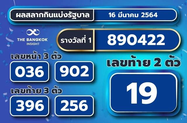 ผลสลากกินแบ่งรัฐบาล วันที่ 16 มีนาคม 2564.
